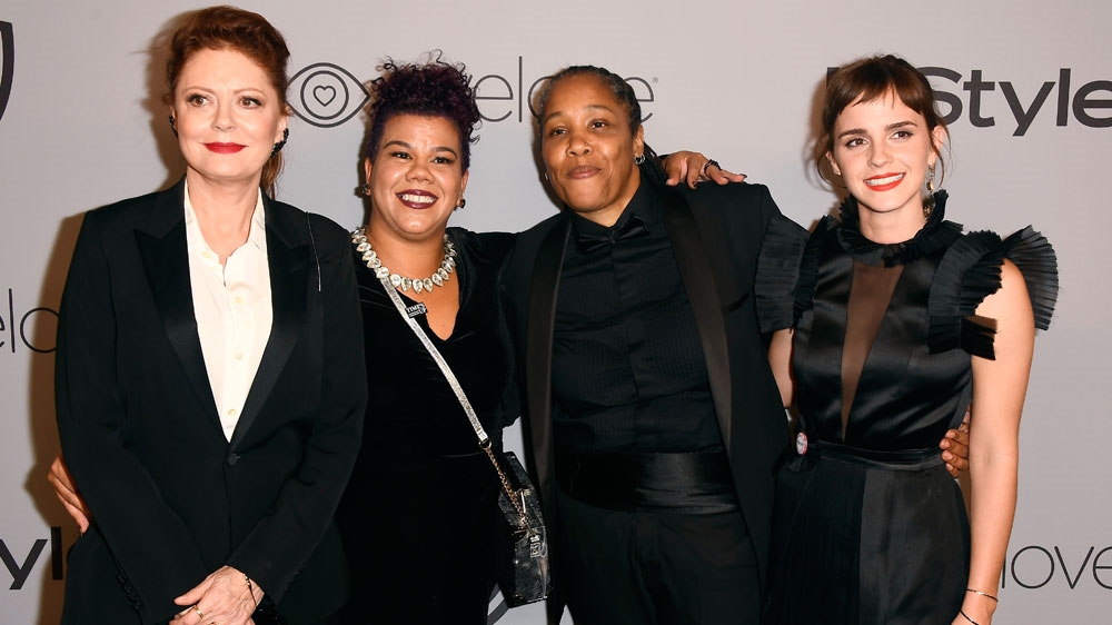 Actor Susan Sarandon, activists Rosa Clemente and Marai Larasi, and actor Emma Watson attend a post-Golden Globes party [Frazer Harrison/AFP/Getty Images]