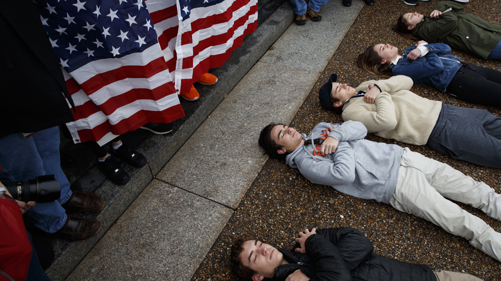 Al Jazeera’s Alan Fisher, reporting from Washington, said the protesters were reading out the names of victims of school shootings that have taken place in the US since 1999.