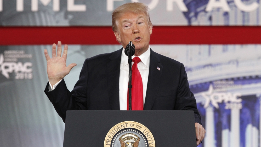 President Donald Trump speaks to the Conservative Political Action Conference (CPAC), at National Harbor, Md., Friday, Feb. 23, 2018. (AP Photo/Jacquelyn Martin)