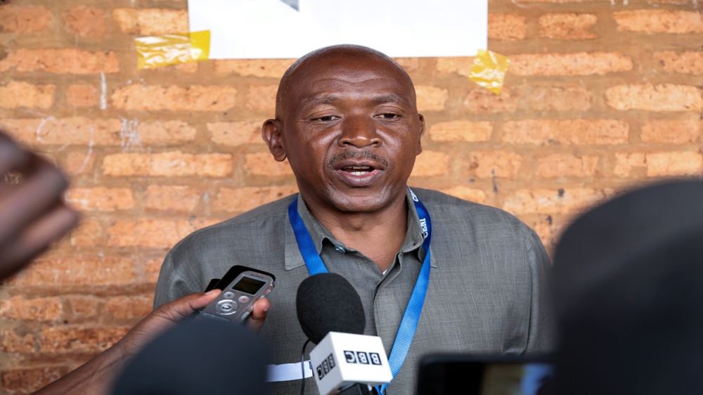 urundi''s opposition leader and deputy speaker in parliament Agathon Rwasa, addresses the media after casting his ballot at a polling centre in Kiremba in Burundi May 17 2018[Evrard Ngendakum/Reuters]