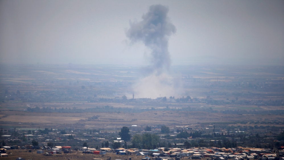 “We’ve been witnessing an intensive air strike campaign throughout the day – our team has counted at least 100 air strikes that are retaliation from the Syrian government forces,” Al Jazeera’s Stefanie Dekker, reporting from Golan Heights, said on Wednesday.