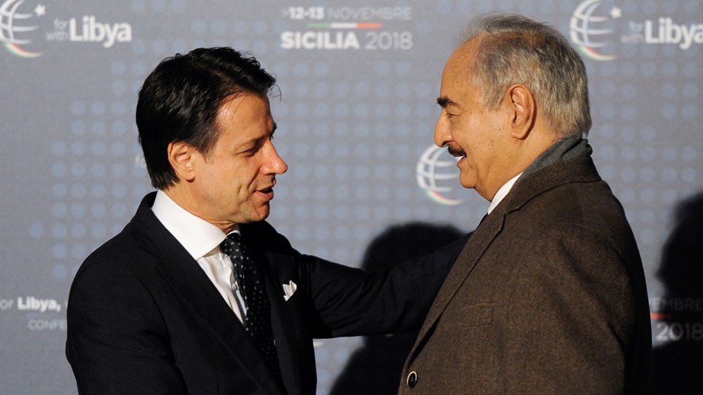 Palermo, Italy – Renegade General Khalifa Haftar is believed to have extended an olive branch to the rival UN-recognised government of Fayez al-Sarraj, saying he will not seek to topple the Tripoli executive until new elections are held in divided Libya.
