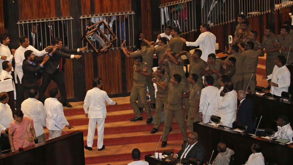 Rajapaksa’s spokesperson Keheliya Rambukwella denied they attacked police or staff, but blamed the speaker for the chaos.