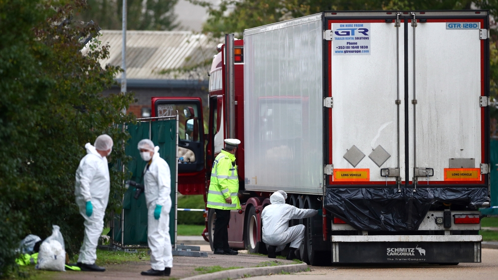The police investigation is focused on the movement of the trailer prior to its arrival at Purfleet docks near Grays little more than an hour before the bodies were found, and on who was behind the suspected human trafficking.