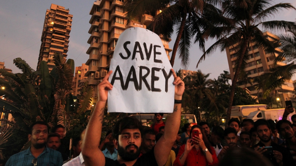 Officials have defended the construction, saying only 30 hectares (74 acres) of the 1,300 hectares (3,212 acres) that make up Aarey – a lush, green oasis close to the Sanjay Gandhi National Park – were being cleared.