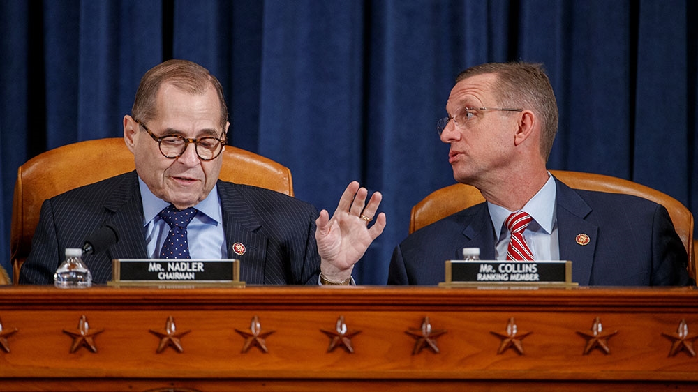 After working late into the night on Wednesday in an unusually solemn meeting, the House Judiciary Committee continued debating the impeachment charges for more than 12 hours on Thursday before unexpectedly breaking for an overnight recess. The panel’s chairman, Jerrold Nadler, said the panel will reconvene for a vote on the impeachment articles at 10am (15:00GMT) on Friday. If approved, the articles would then go to the full House for a vote next week.