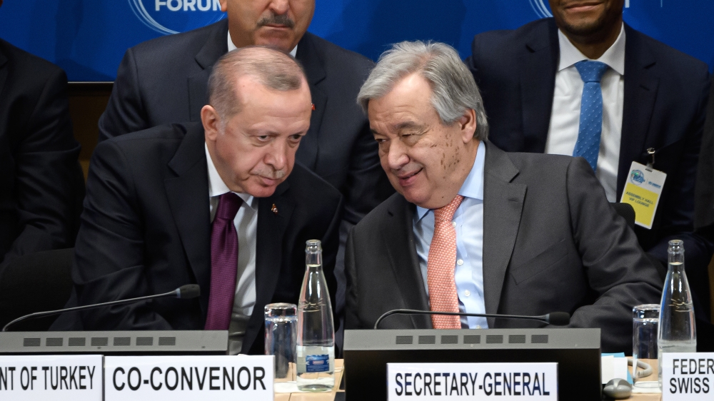 “We need to find a formula to allow [Syrian] refugees … who travelled to Turkey to be resettled in their motherland,” Erdogan told delegates, as he called for a “peace zone in northern Syria”.
