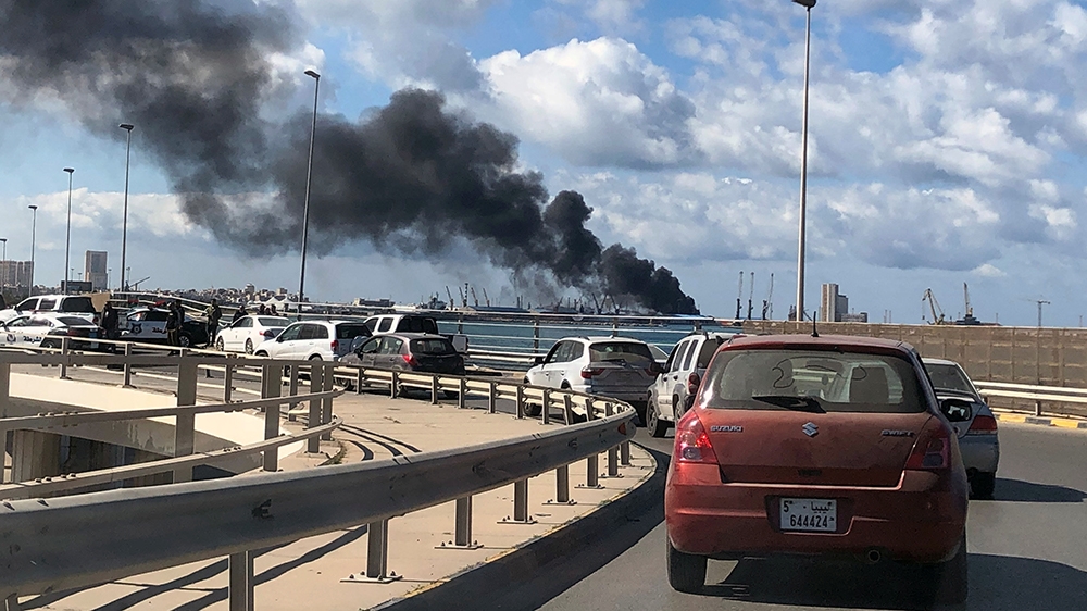Footage shared online show thick black smoke rising from the dock areas of Tripoli, which is controlled by the internationally recognised Government of National Accord (GNA).