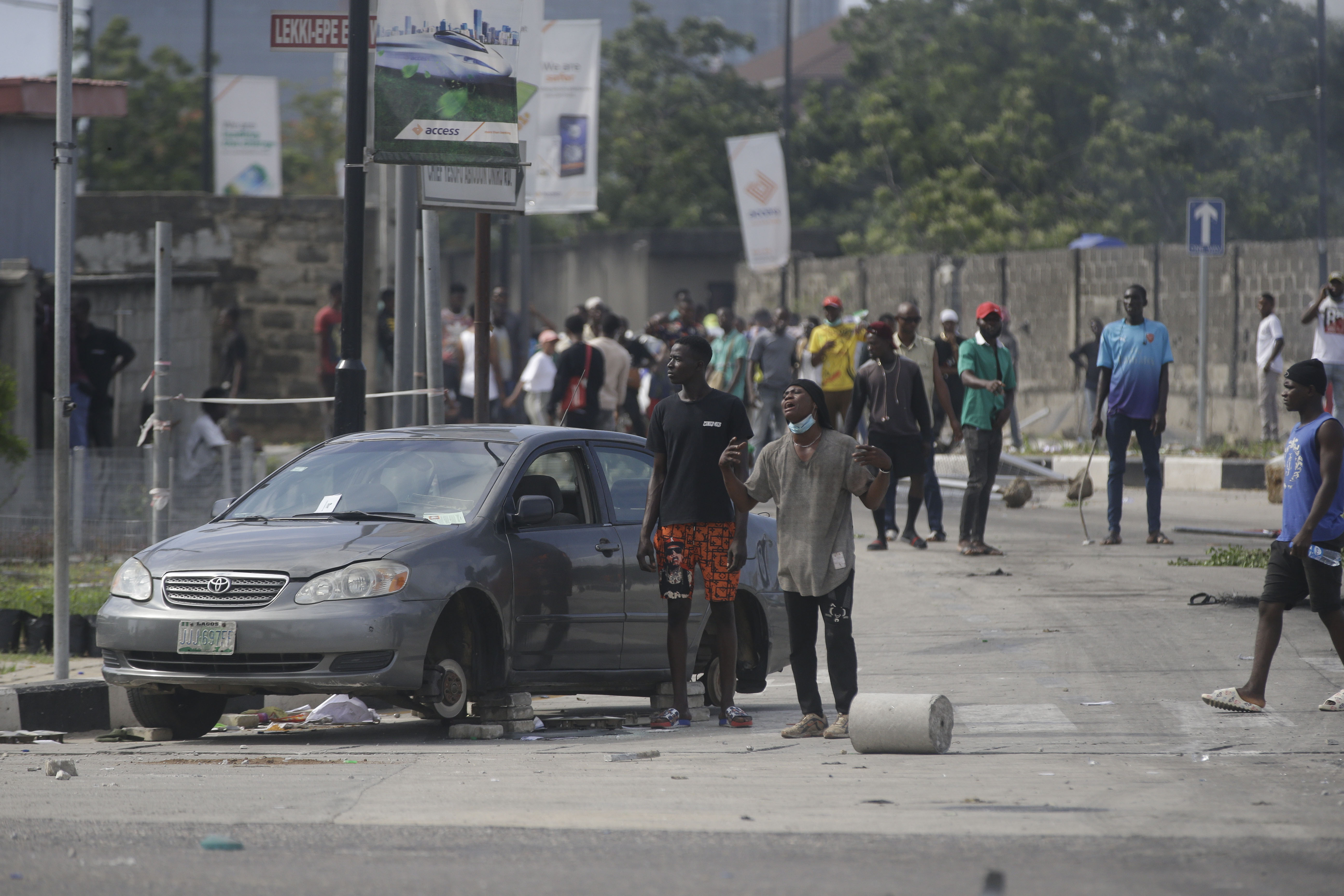Video verified by Reuters news agency showed men walking slowly in formation towards demonstrators, followed by trucks with flashing lights, and the sound of gunfire popping. Another video showed the toll gate itself, with a protester waving a Nigerian flag, as people ran amid the sound of gunfire.
