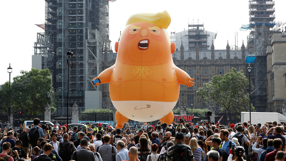 The blimp flew outside the Houses of Parliament on July 13, 2018, when thousands of demonstrators crammed the streets of central London to protest against Trump’s visit to the capital.