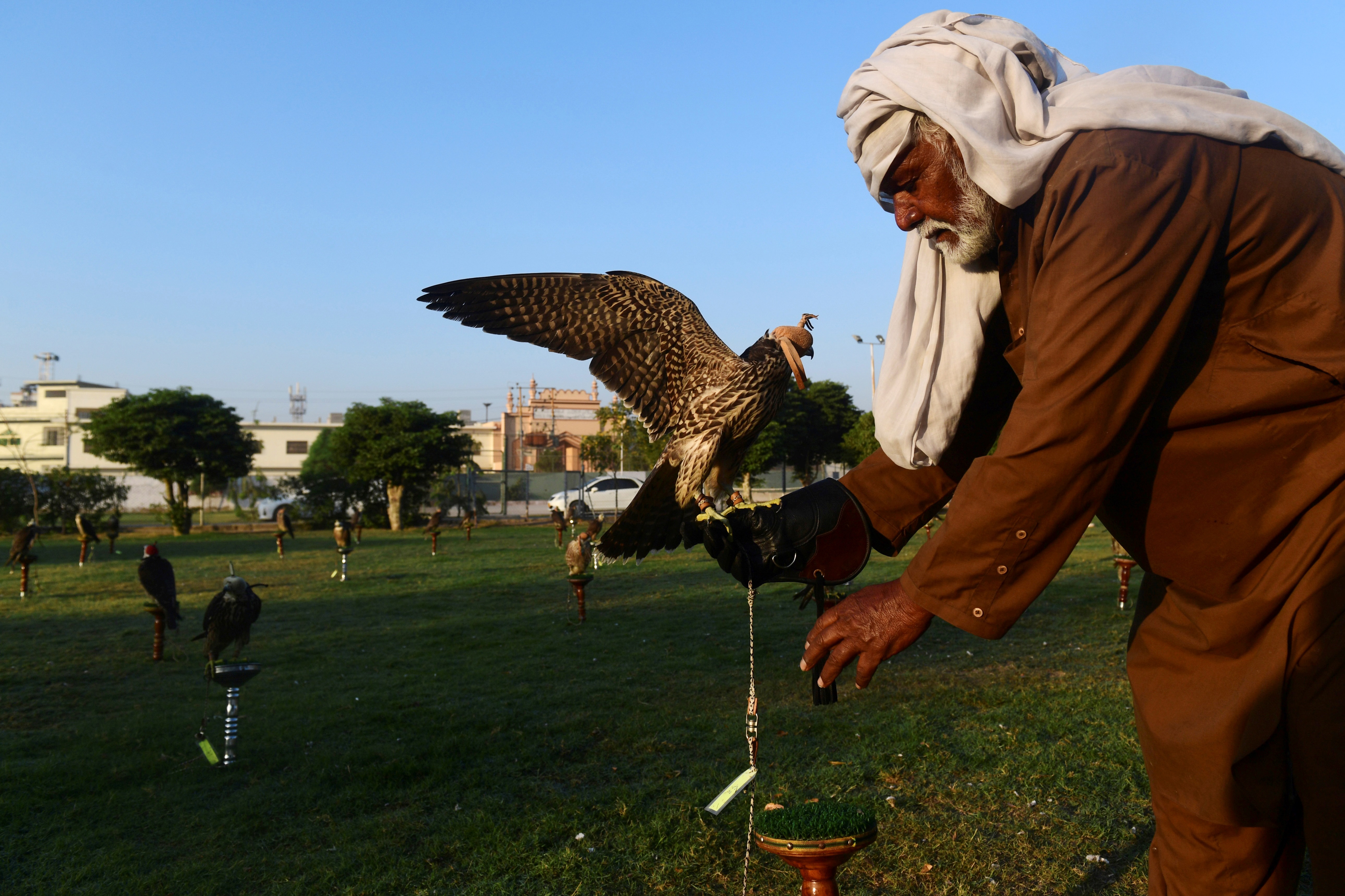 Wild birds are prized over those bred in captivity because they are believed to be better hunters, though there is no evidence to support those claims [Zain Zaman Janjua/AFP]