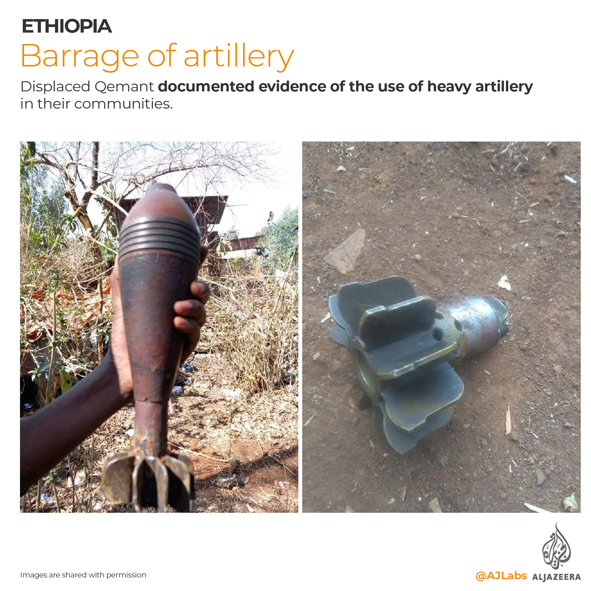 “Soldiers used everything to batter the Bihona village in late August,” Tadele, one of the thousands displaced, told Al Jazeera. “I saw them used RPGs, mortars and dishkas to fire at homes,” he said using a term commonly used in Ethiopia to refer to the Russian made DShk anti-aircraft machine gun.