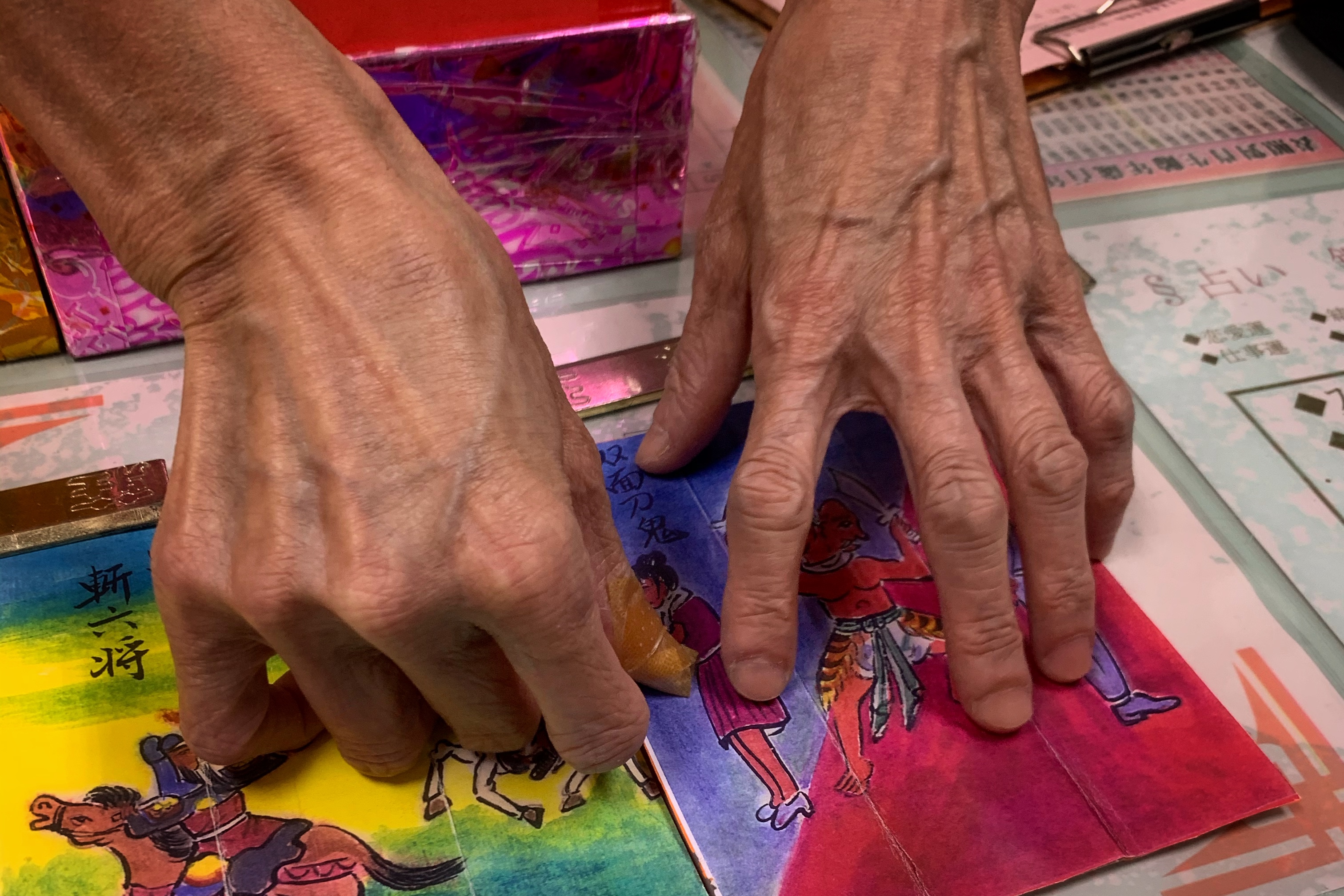 Chang opens the envelope to pull out a card and lays it out next to two others to form a triptych of predictions for the world in the upcoming Year of the Ox, which officially begins on Friday.