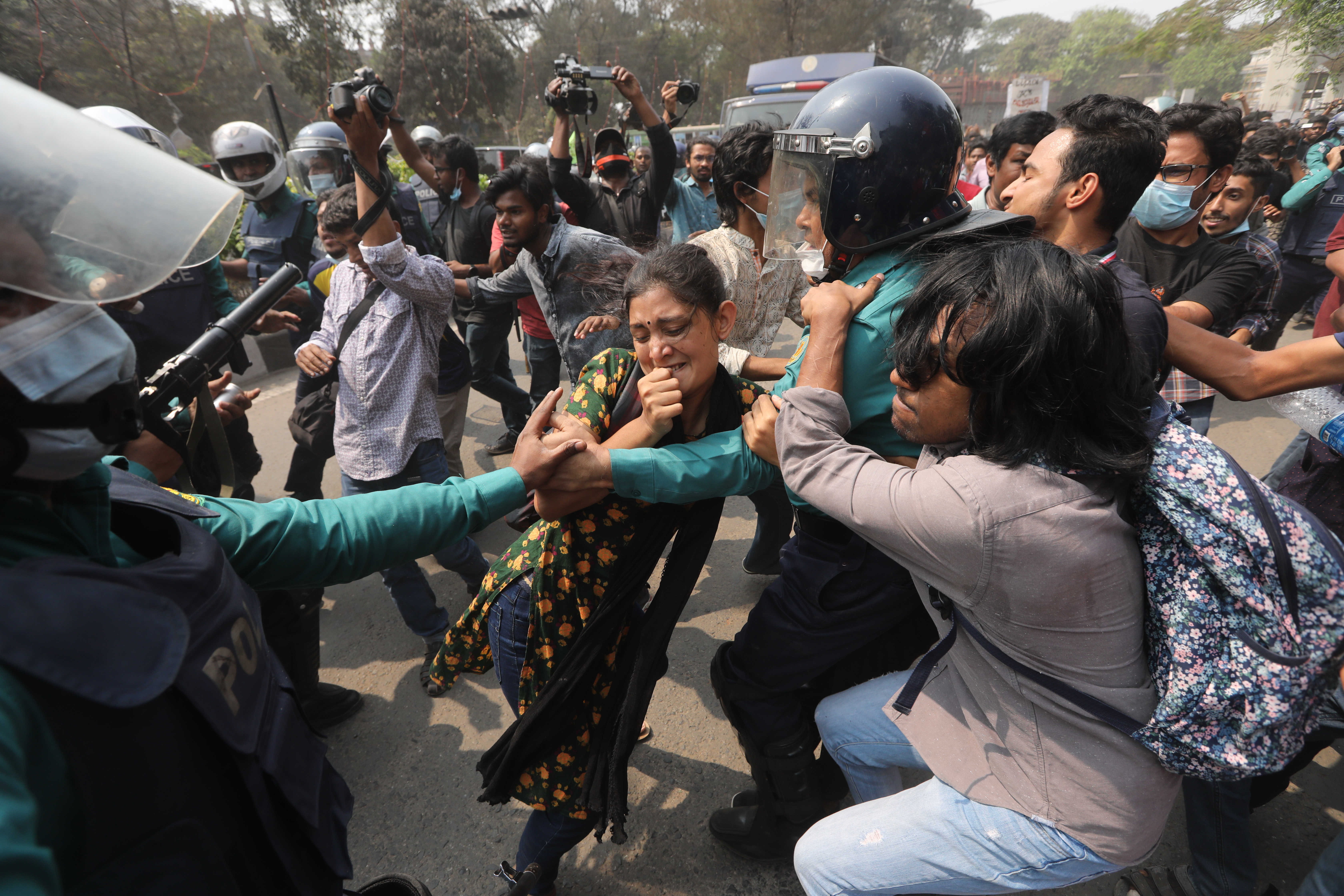 They broke a barricade by removing barbed wire fences on the way to the ministry but were intercepted by a few hundred police officers outside the ministry’s building in downtown Dhaka.