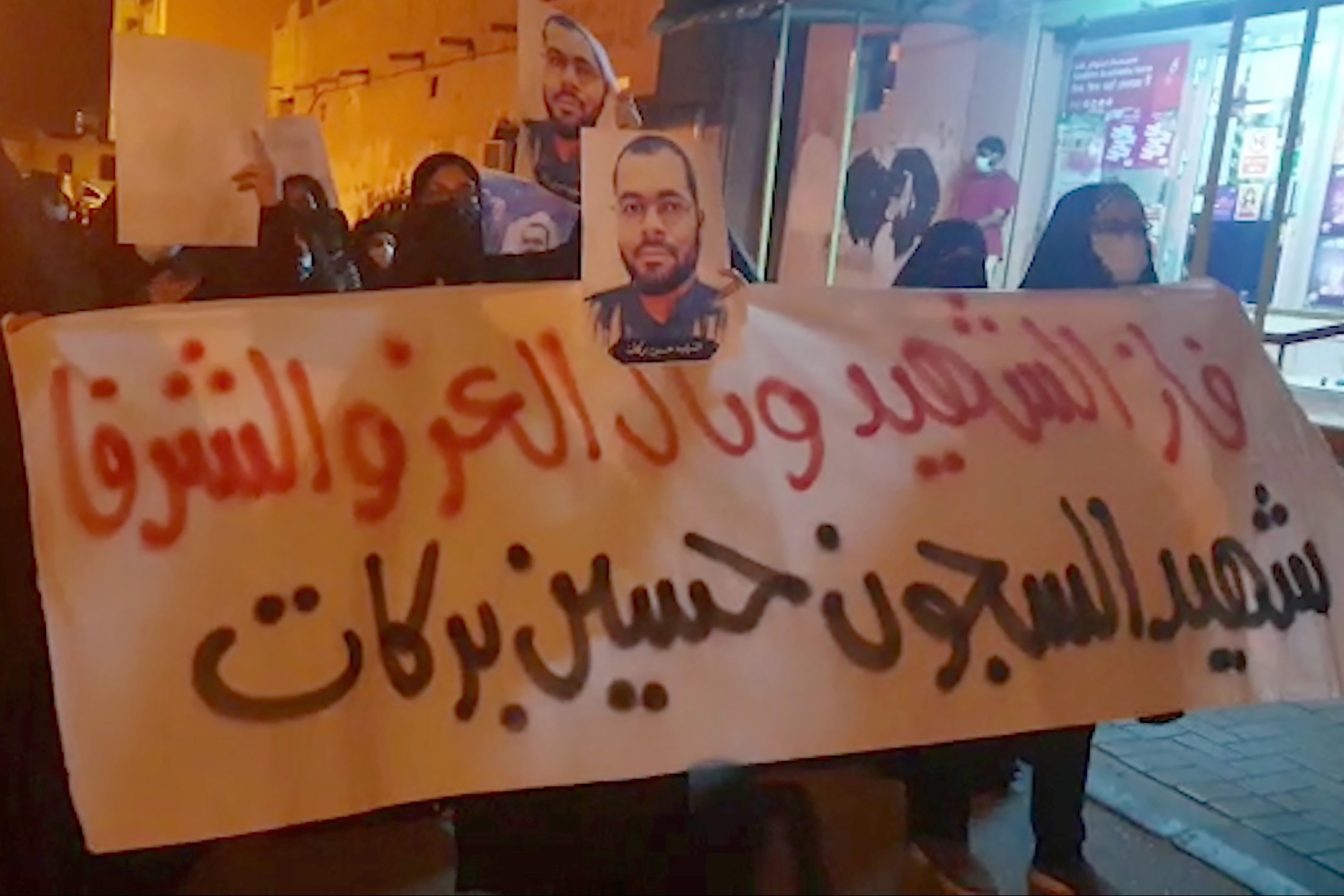 Videos of the protest, which corresponded to Associated Press reporting on the demonstrations, saw those marching shout that they held King Hamad bin Isa Al Khalifa responsible for Barakat’s death over poor care.