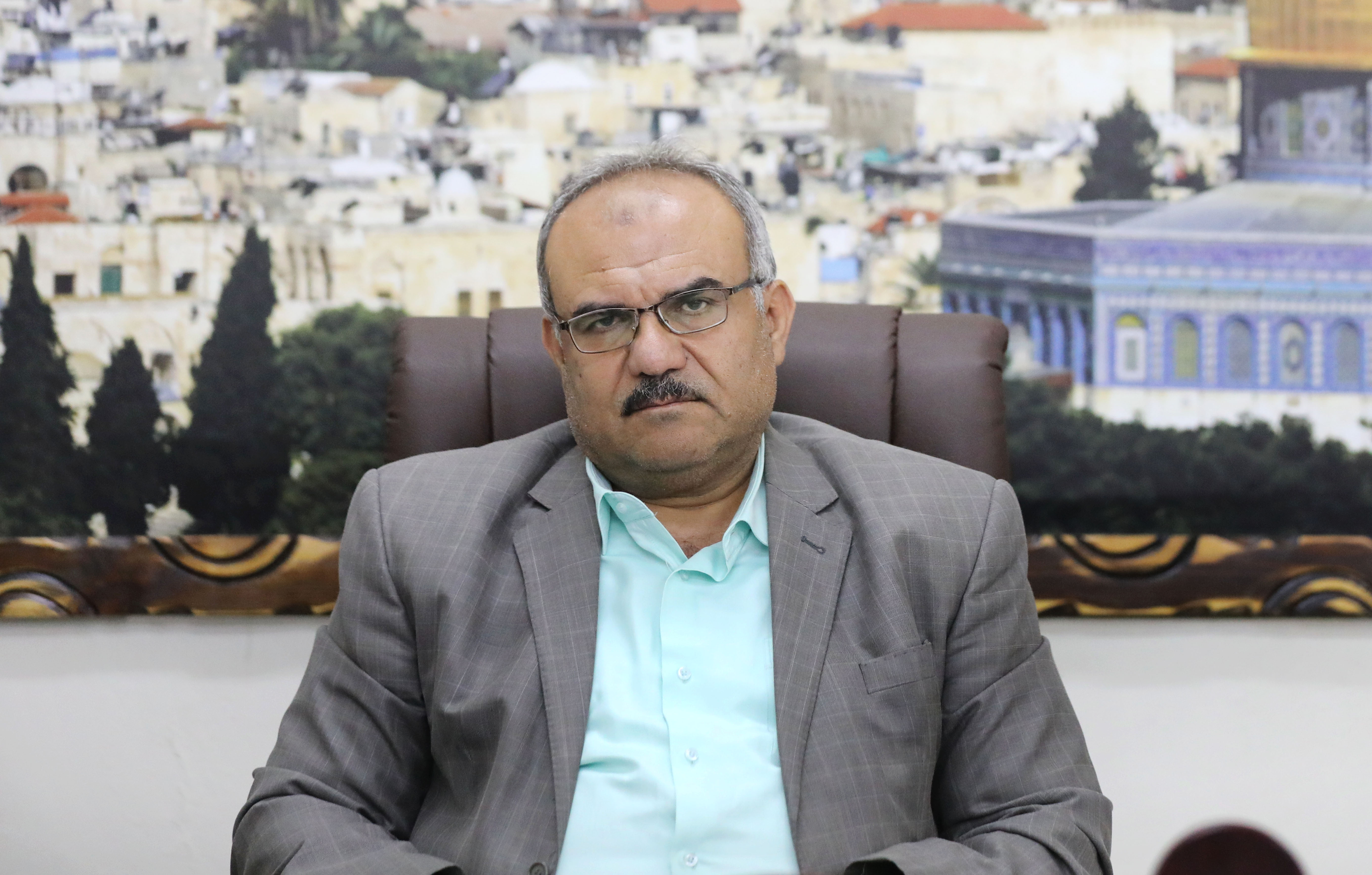 Under-secretary of Gaza’s ministry of public works and housing Naji Sarhan sits in his Gaza City office [Ashraf Amra/Al Jazeera]