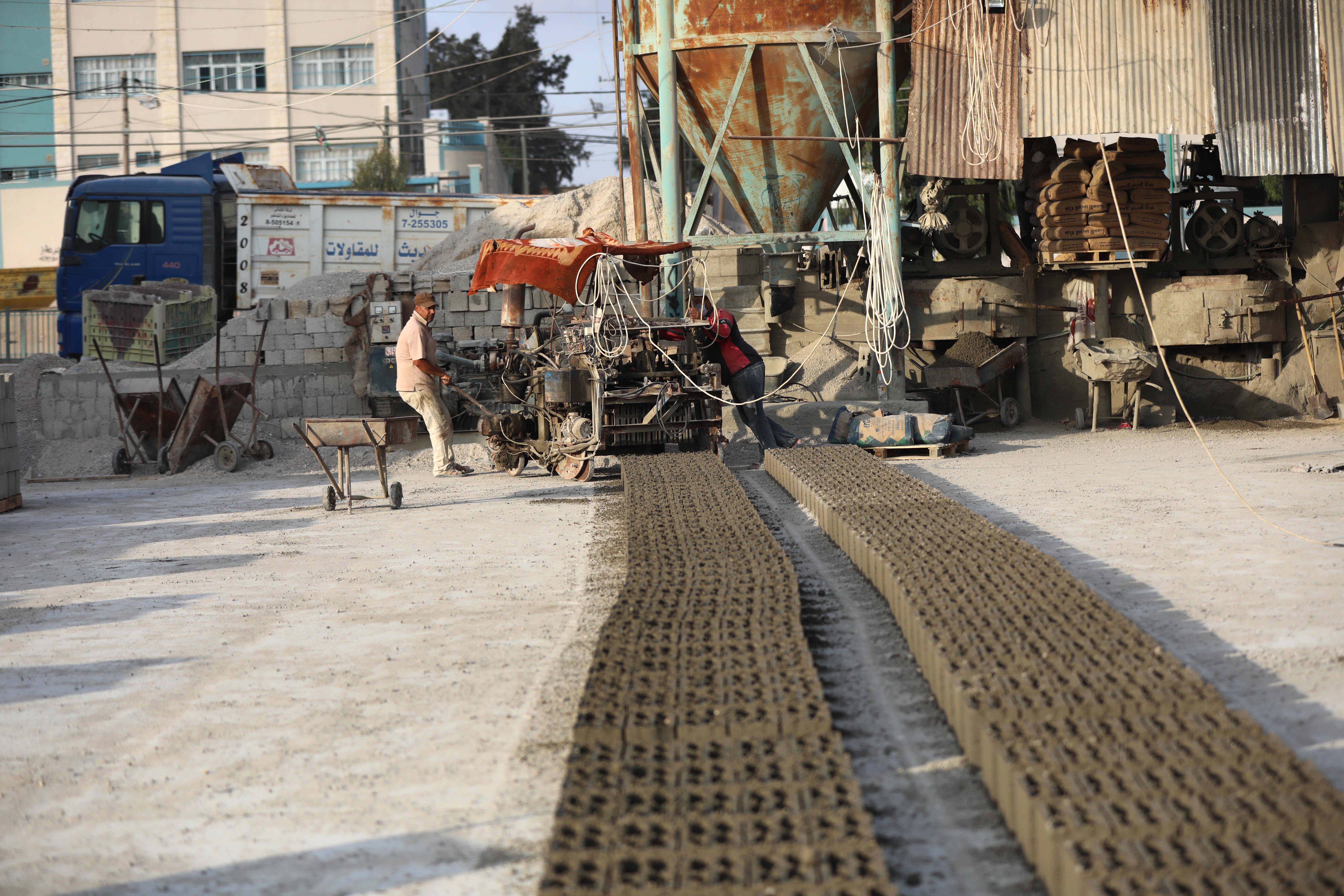 Concrete blocks are made from the remains of destroyed homes after recycling [Ashraf Amra/Al Jazeera]