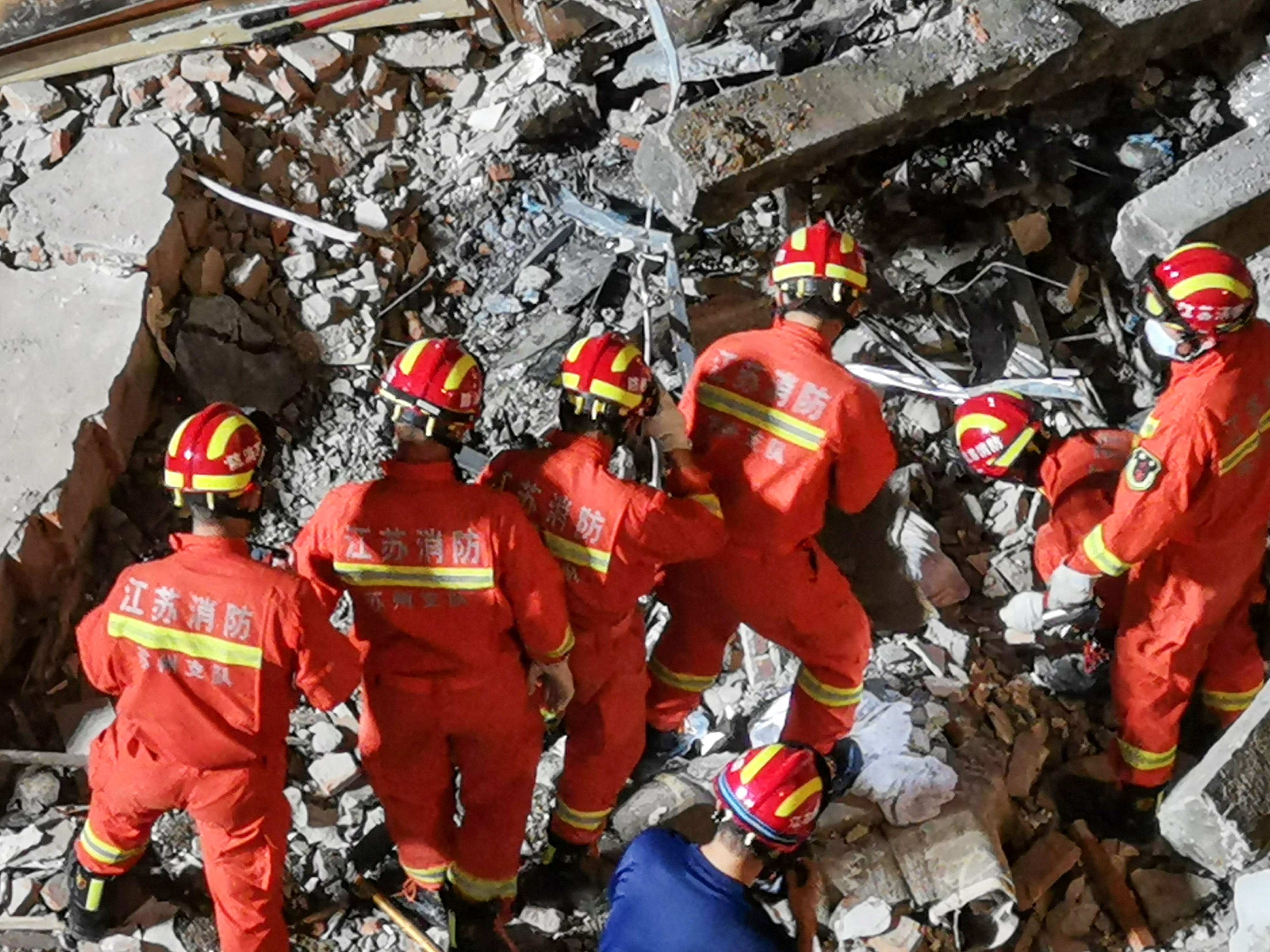 Teams are combing through debris after budget hotel in the eastern city of Suzhou collapsed on Monday afternoon.