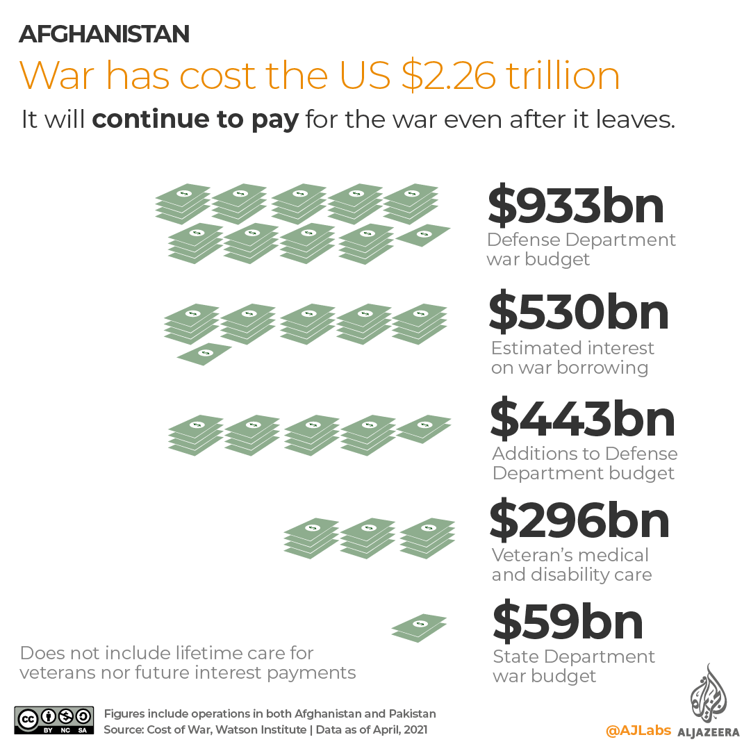 Since 2001, the US has spent $2.26 trillion in Afghanistan, the Costs of War Project at Brown University calculates.