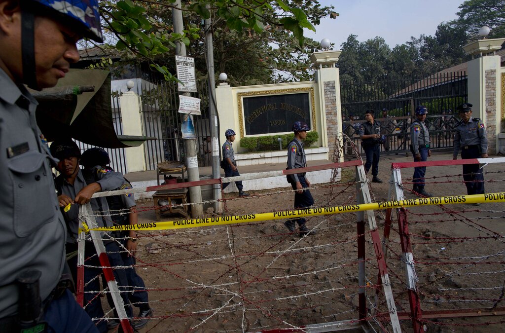 According to Myanmar Now, one of the bombs exploded in a building where staff receive care packages for prisoners and another detonated outside the building.