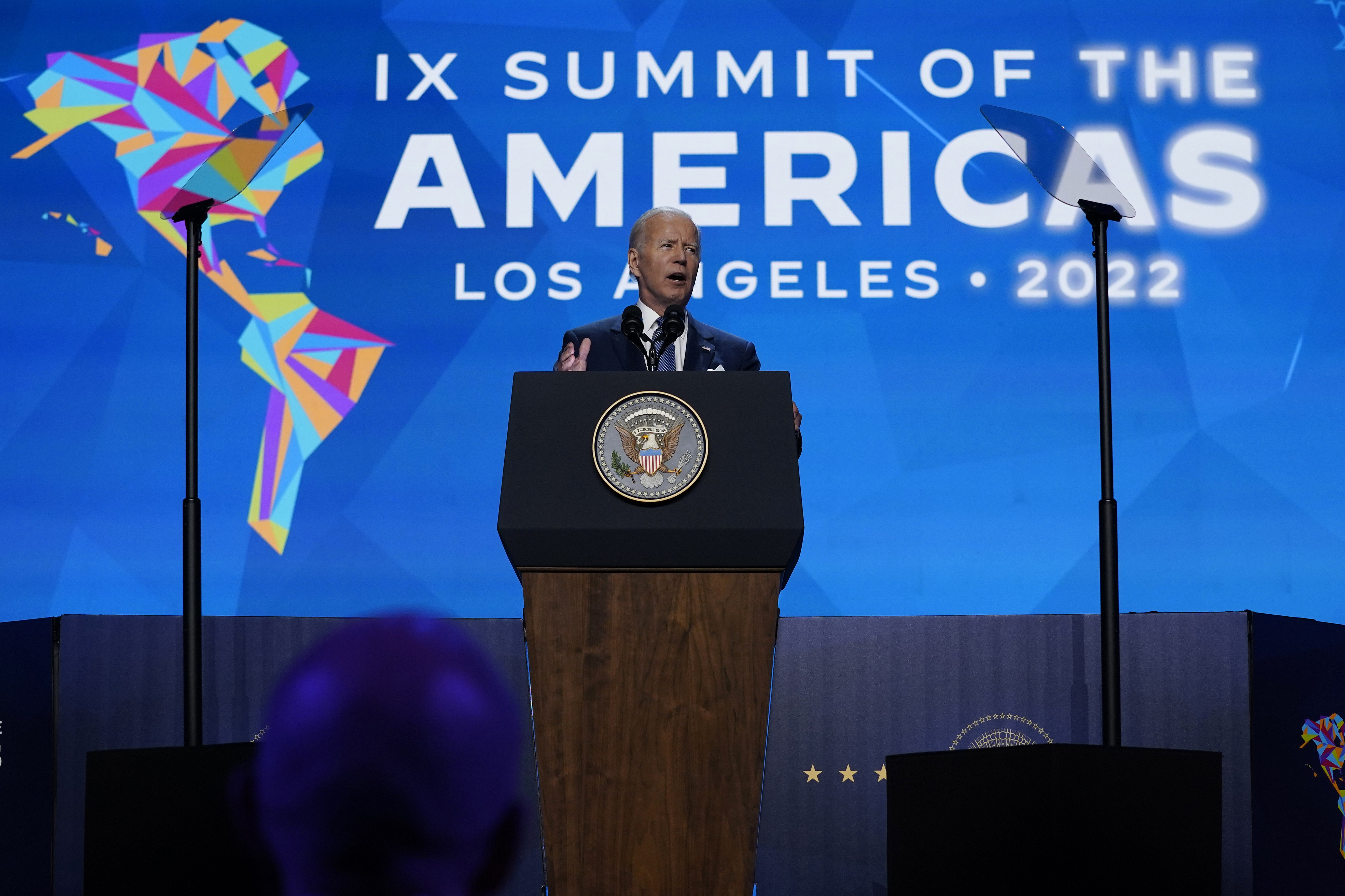 US President Joe Biden speaks during the inaugural ceremony of the Summit of the Americas.