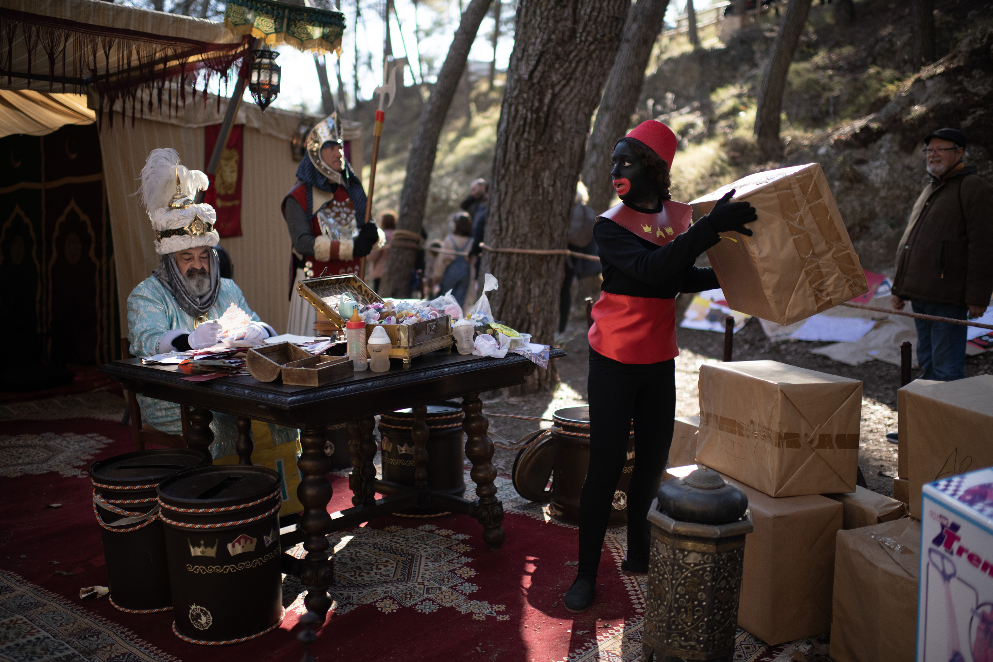 In Alcoy, however, hundreds of young people still wear the makeup. They collect children’s letters with Christmas wish lists, and the following day, blackface pageboys – helpers of the king – deliver gifts by climbing into houses with red ladders through the windows.