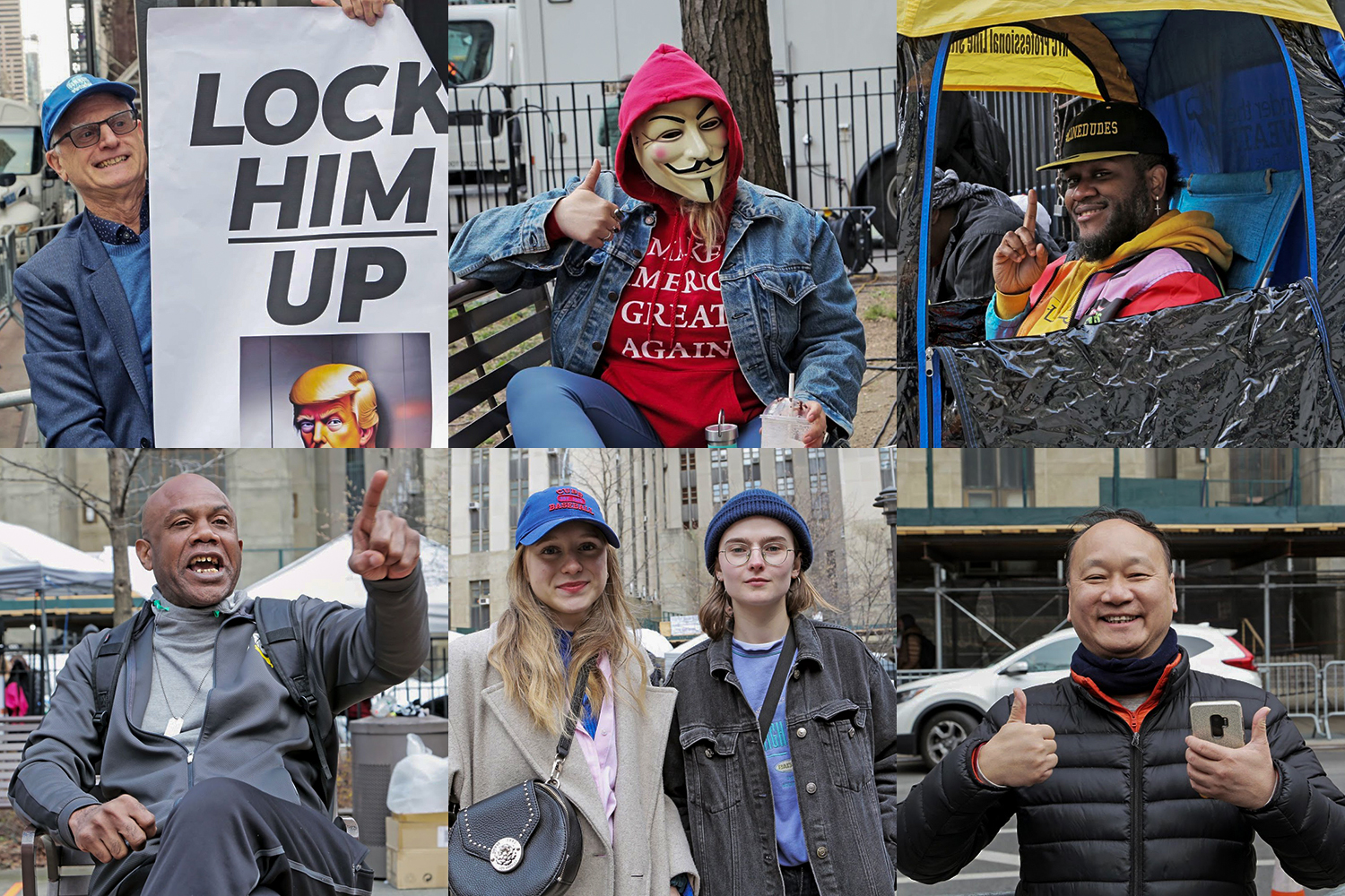 “I am not a Trump supporter, I’ve never been a Trump supporter, but I feel like what needs to be done, needs to be done, and I’d rather just keep it at that – while making a couple bucks. Today, I’m waiting in line from 4pm until 7am for a news station for them to be able to get inside of the courtroom for the proceeding. So I’m a professional line sitter. Same Old Line Dudes – we’ve been in business for 10 years, and I have been with the company celebrating 10 years this September. [I’m wearing] thermals and double socks and double underwear. I’ve been here now since about 3:49pm It’s 4:28am right now. I’ve waited in lines for an entire week and a half before. Honestly, I’m a little nervous. …[January 6] is coming to my mind, but you know what? Walk by faith, not by sight. I’m very much worried, but the security from the looks of things, they have it all under control. Plus, we’re New Yorkers – ain’t nobody going to mess with us here.”