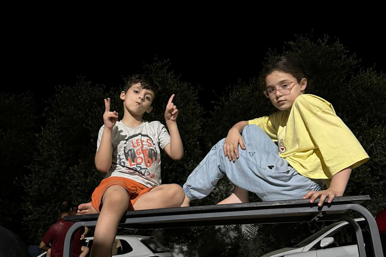 “Baba, this isn’t camping, absolutely not,” she said from her perch on a table where she and Mahmoud were sitting. as the constant hum of Israeli drones filled the night sky. “Look, there’s no nice forest around us, we don’t have a tent, we don’t have flashlights. This isn’t how it’s done.