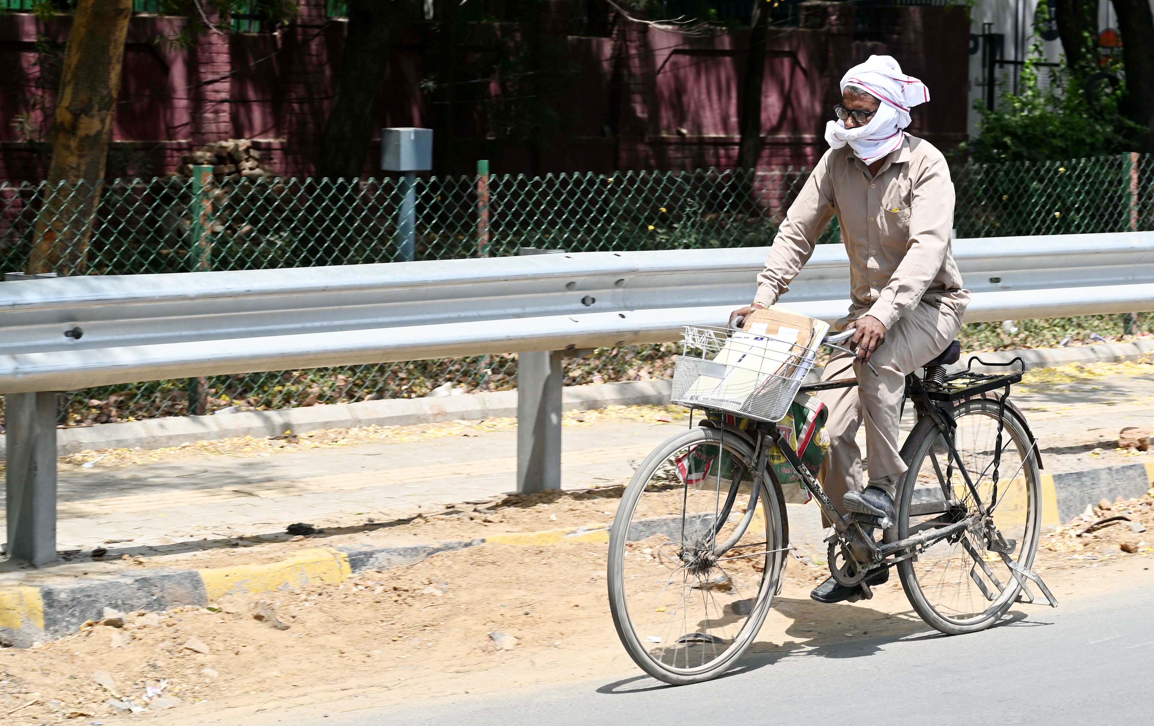 “When I am driving my two-wheeler during work, the hot air blowing on my body makes it feel like I am sitting outside a furnace,” says Aman, who goes by a single name. Last month, he fainted due to the heat while making a delivery in a remote area of Delhi, he recounts, adding that a shopkeeper came to his aid and poured cold water over his head. “Since that incident, I make sure to carry small water bottles and sprinkle water over my head and face multiple times during the day to remain conscious,” says Aman, his clothes drenched in sweat.