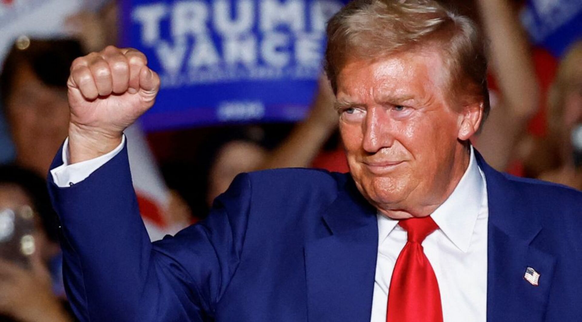 - Gunshots rang out as he spoke on the stage. A bullet grazed his ear. Trump took cover, with Secret Service agents diving on top of him. He then stood up, bearing a bloody ear and pumping his fist. “Fight, fight, fight,” he said.