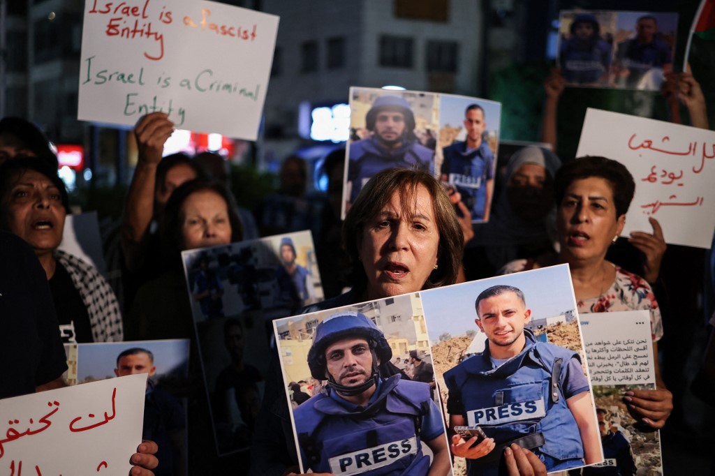 The latest killings have prompted outrage around the world. In Ramallah in the occupied West Bank, Palestinians filled the streets, waving flags and carrying photographs of the slain reporters.