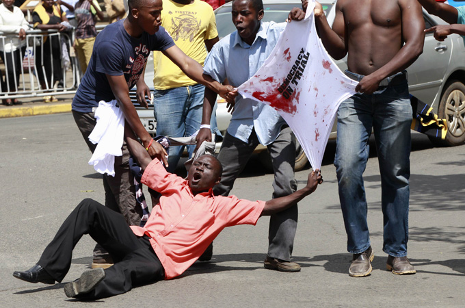 Some of the supporters wore T-shirts marked with slogans “I support the petition” and “Democracy on trial”, an echo of Odinga’s statement that his petition would be a test of democracy in Kenya.