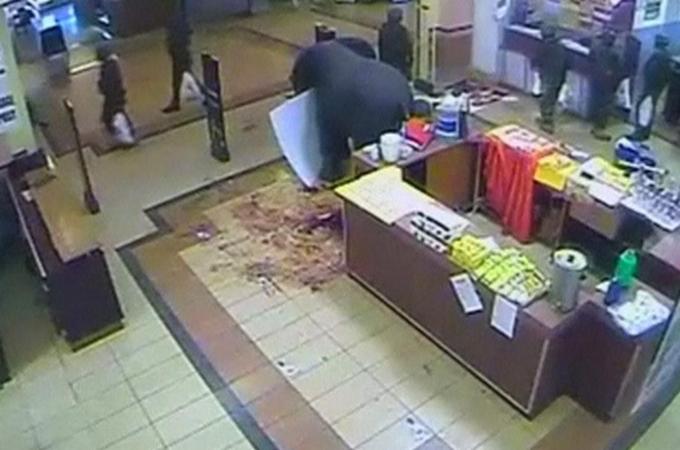 According to witness reports at the end of the siege, mobile phones were yanked from displays, cash registers emptied and alcohol stolen.
