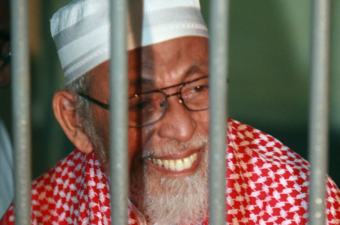 “Abu Bakar Bashir planned and mobilised other people to break Indonesian law by providing firearms, munitions, explosive materials and other dangerous materials to be used to carry out an act of terrorism,” according to a copy of the 93-page indictment against Bashir seen by the AFP news agency.