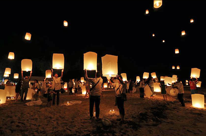 Hundreds of people also lit candles on Patong beach on Phuket island after observing a minute’s silence. Afterwards, many placed the candles into a sand sculpture created by students as part of the memorial service.