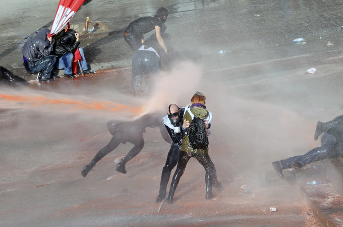 Protests turn violent as police fire tear gas and water cannons at protesters marching to parliament in Ankara.