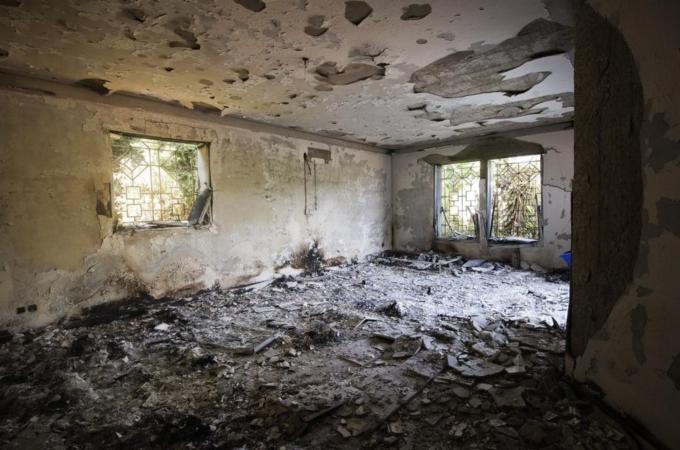 The consulate consists of four one-storey buildings inside a vast compound, and all four of them are completely torched.