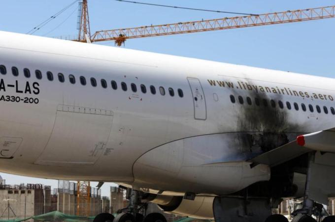 A picture posted on the internet showed a Libyan Airlines plane on fire as a plume of smoke billowed over the airport.