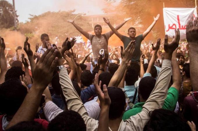 The student demonstrations, against what they termed repressive university policies, and also against the 2013 toppling of the elected Muslim Brotherhood-led government, coincided with the start of the academic year.