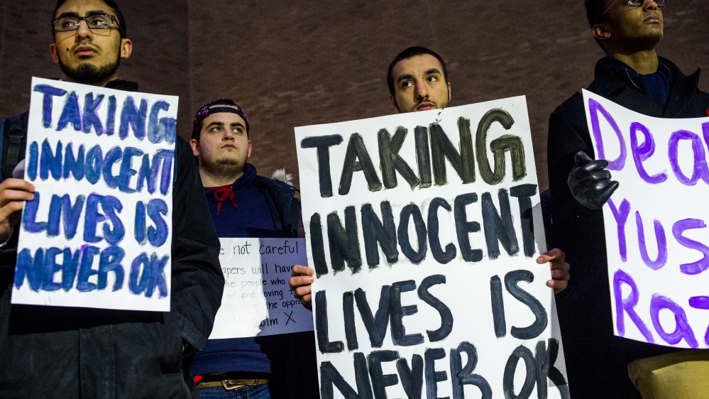 ![The burial of the three murdered students at the Muslim Cemetery of the Islamic Association of Raleigh in North Carolina last February [Getty]](https://aljazeeranews-mggx1uo47w.edgeone.app/wp-content/uploads/2016/02/64f9acdc862745e6921e68e438fd6a69_19.jpeg?quality=80)