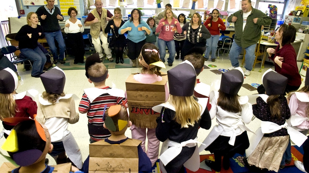 ![Native Americans are depicted at the first Thanksgiving feast, in a scene from a 1960 educational film about the Pilgrims’ first year in America [AP]](https://aljazeeranews-mggx1uo47w.edgeone.app/wp-content/uploads/2017/11/519ae8f7ba8c4efea3c2c4f5ee85abb8_6.jpeg?quality=80)