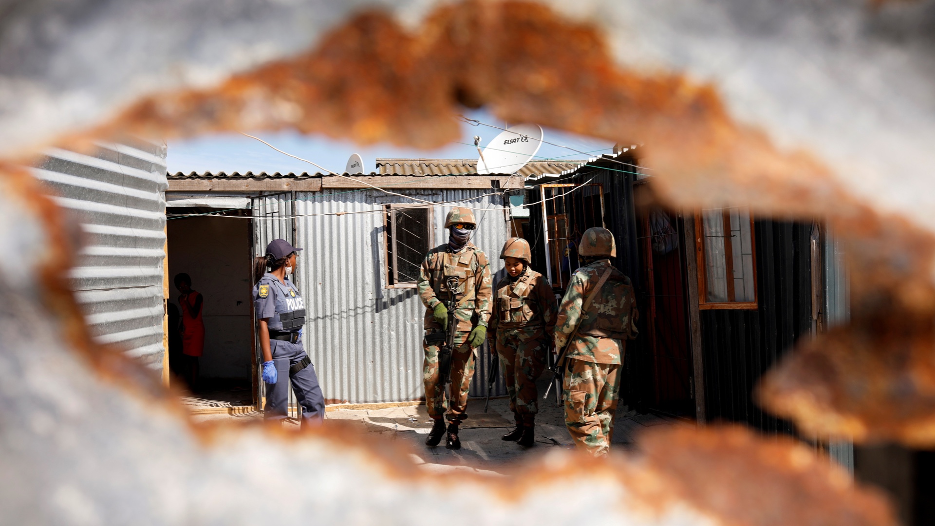 Soldiers and police patrol in Khayelitsha, South Africa, as authorities attempt to enforce a 21-day nationwide lockdown aimed at limiting the spread of the new coronavirus [Reuters/Mike Hutchings]