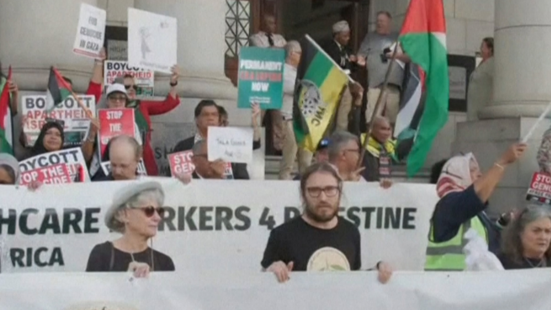 Protesters rally outside court hearing on Gaza genocide case