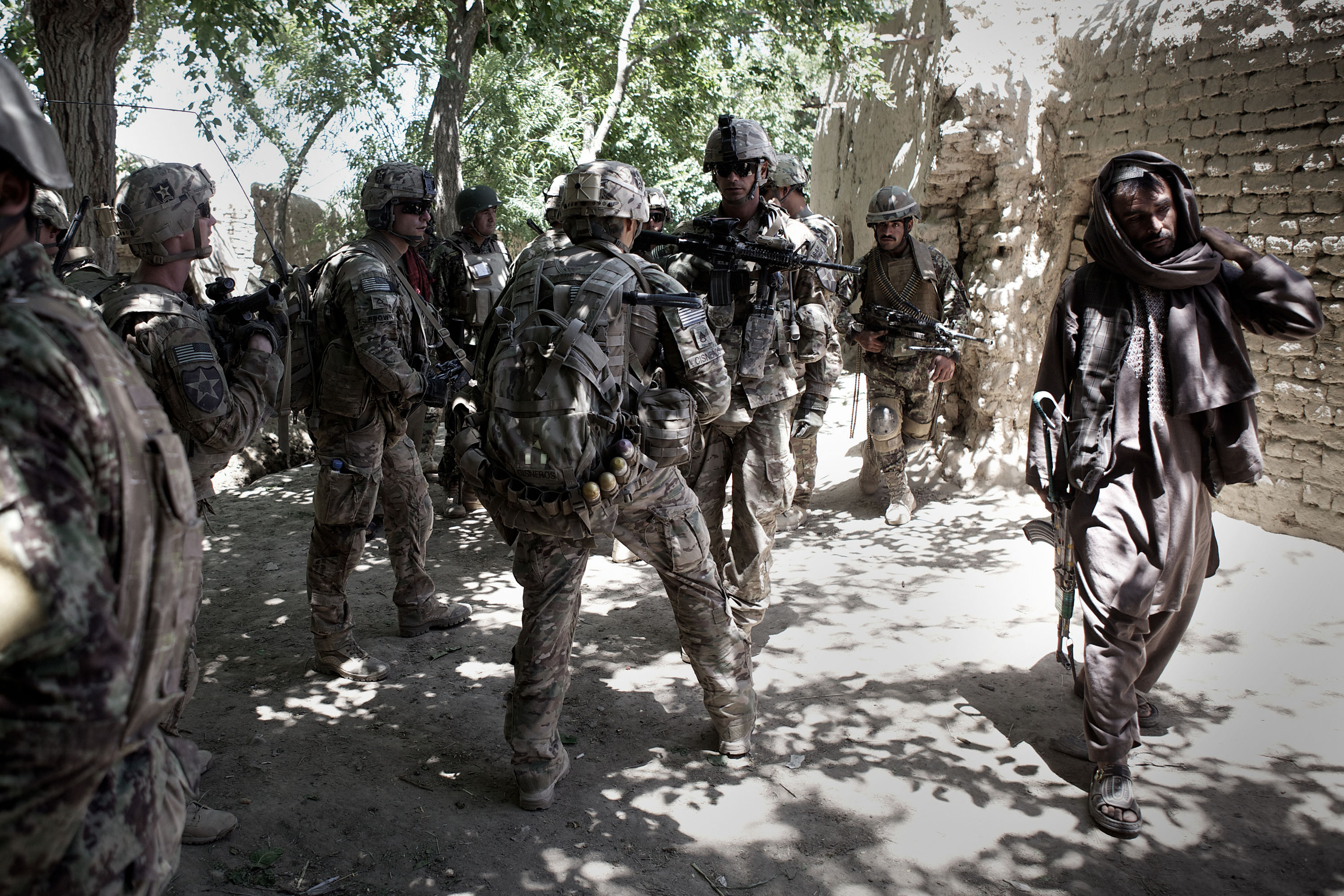 That determination became very clear during the firefight in Pay-E Moluk village later that day. After the initial attack, Taliban fighters seemed about to pull back. Jalil was keen to chase after the “jackals” and give them no respite. He was quick to point out some positions where he believed the Taliban would fight from next, and where there had probably placed IEDs. But the Americans would only move slowly, clearing each footstep for hidden bombs before moving further. As it happened, over the next five hours, the Taliban attacked again repeatedly, but the Americans continued to refuse to take the bait and give chase.