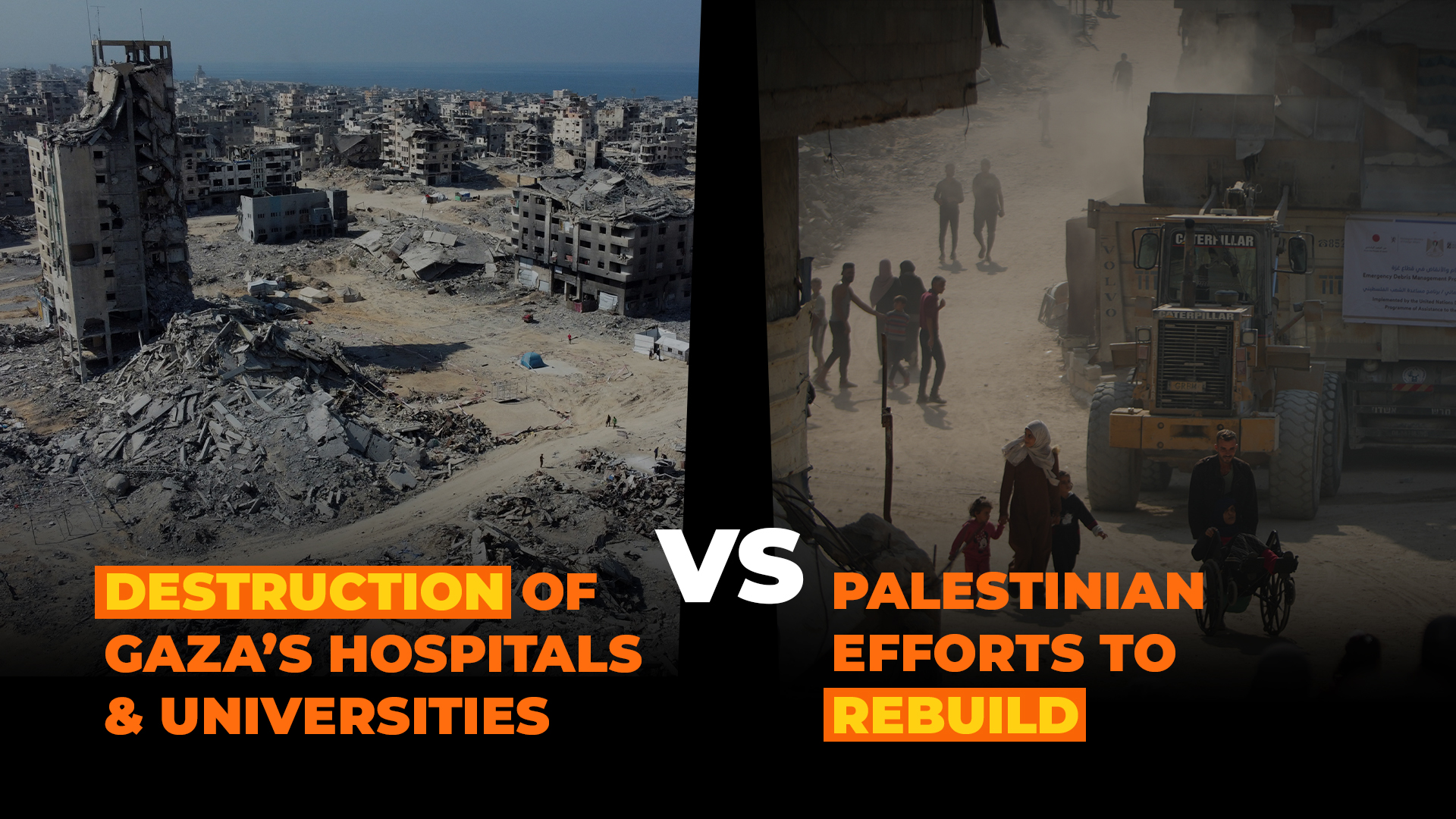 We compare and contrast Gaza’s destruction over the past two years with the ongoing Palestinian efforts to rebuild.