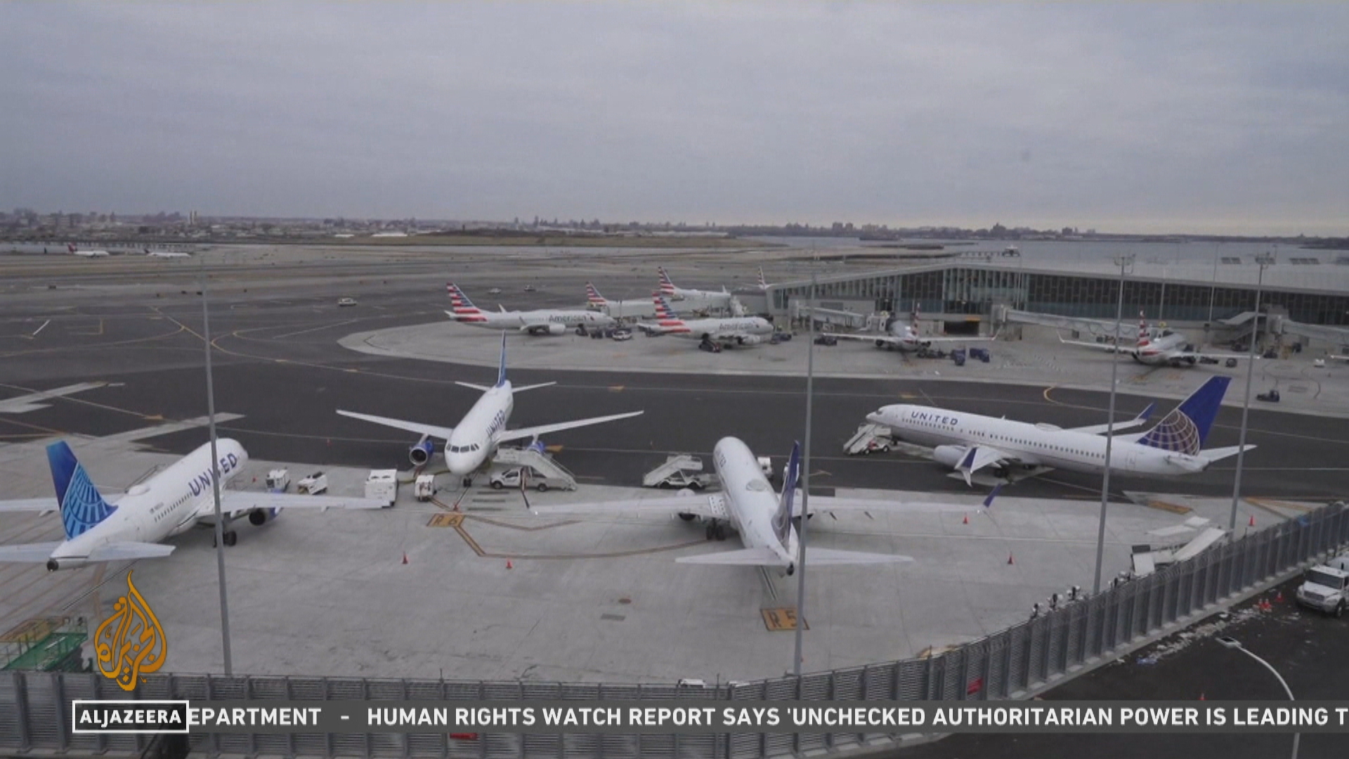 Thousands of flights were disrupted – domestic and international – with delays to planes heading to the US from elsewhere.