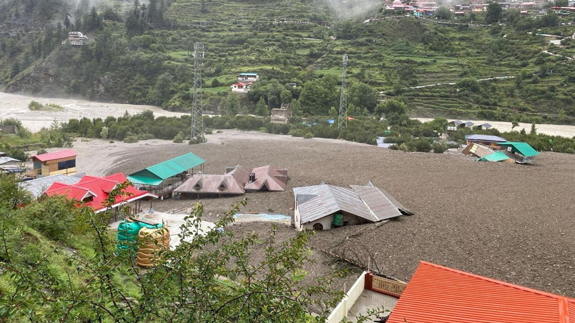 Flash flooding caused by a massive cloudburst was filmed wiping out buildings in a Himalayan town in India on Tuesday, as rescuers fear dozens are trapped.