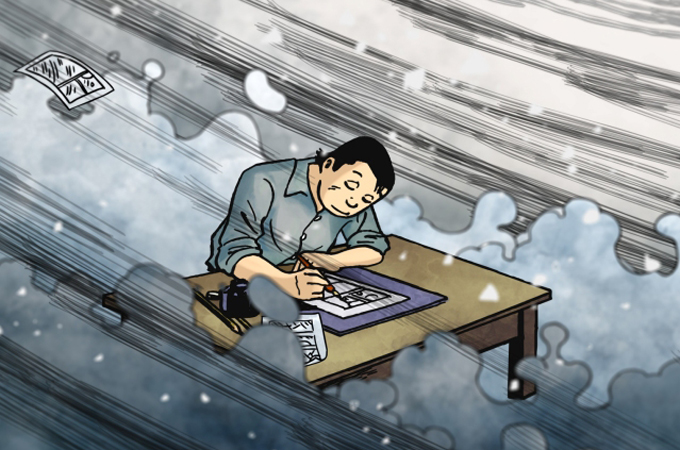 The film’s visual style directly references the one-colour printing technique of the original comics and by remaining faithful to the original drawings, Khoo shows how Tatsumi developed his graphic style over time.